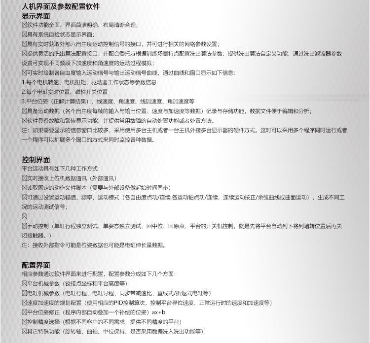 答: 我公司主要從事仿真平臺(tái)、六自由度平臺(tái)和運(yùn)動(dòng)平臺(tái)控制卡的研發(fā)、生產(chǎn)與銷售,同時(shí)承接大型4D/5D/7D影院等工程。專注技術(shù)領(lǐng)先,提升用戶體驗(yàn)是我們的追求!