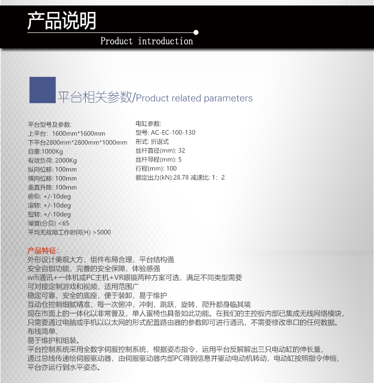 答: 我公司主要從事仿真平臺、六自由度平臺和運動平臺控制卡的研發(fā)、生產(chǎn)與銷售,同時承接大型4D/5D/7D影院等工程。專注技術(shù)領(lǐng)先,提升用戶體驗是我們的追求!