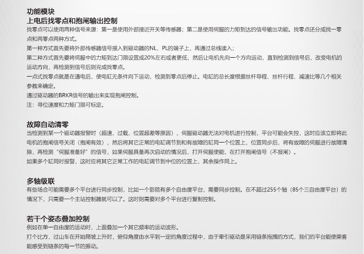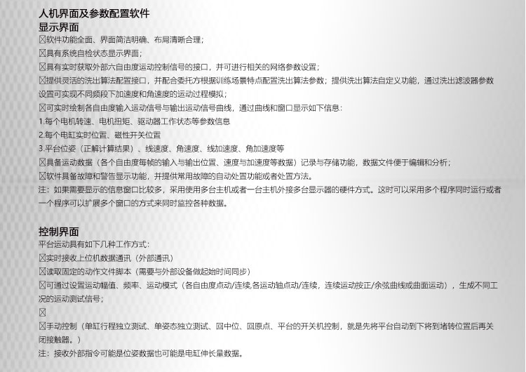 答: 我公司主要從事仿真平臺(tái)、六自由度平臺(tái)和運(yùn)動(dòng)平臺(tái)控制卡的研發(fā)、生產(chǎn)與銷售,同時(shí)承接大型4D/5D/7D影院等工程。專注技術(shù)領(lǐng)先,提升用戶體驗(yàn)是我們的追求!