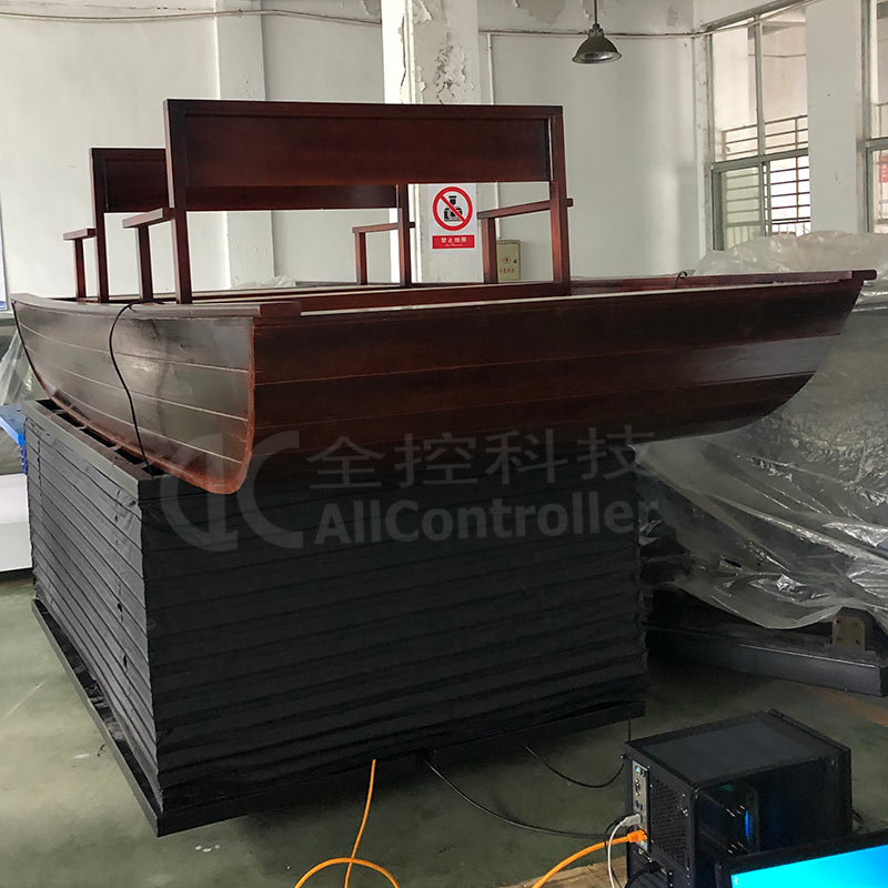 該六自由度平臺專門用來科普館VR模擬科普船,體驗(yàn)大宋的海運(yùn)繁榮的盛世。體驗(yàn)者坐在船舶模擬器上,通過佩戴VR眼鏡觀看大宋海運(yùn)的繁盛,船舶隨著波浪顛簸,平臺本身也會隨之運(yùn)動,有如親身泛舟在大宋港口中,體驗(yàn)前年前的盛世。