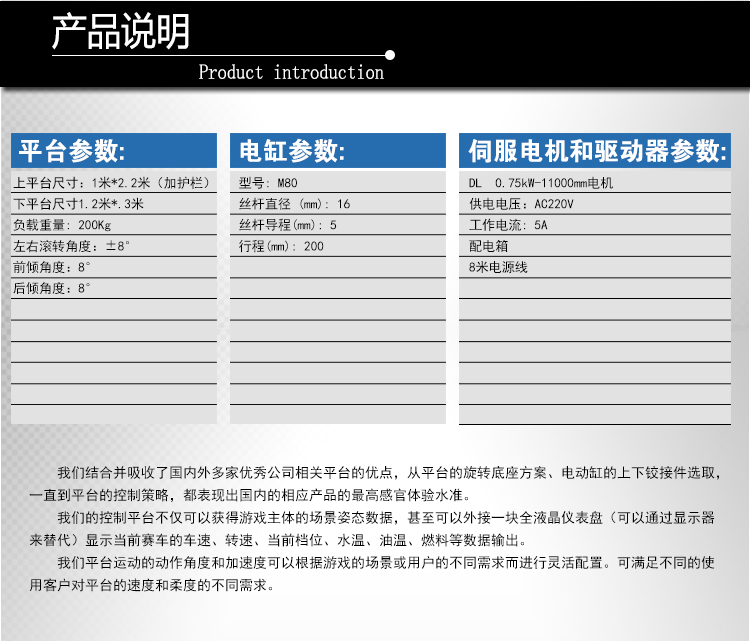 該三自由度地震模擬平臺是我公司根據(jù)某科技館要求定制,適用于地震科科普館、科技館、游樂場所使用,最真實地受眾親身體驗地震的感覺,突出體現(xiàn)地震時地面劇烈抖動、波動縱波、橫波,加之視景、音響、特效的有機配合,讓人身臨其境。更進一步了解地震的相關知識,達到一定的科普效果,提高人們的防震減災意識。