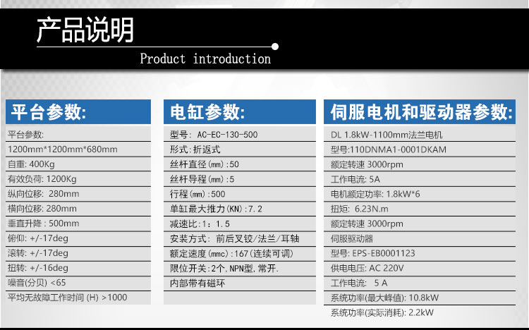 本公司的動(dòng)感座椅平臺(tái)的有效載荷(載人數(shù)量)、升降行程、傾斜角度、方位角度、縱/橫向位移等關(guān)鍵參數(shù)可根據(jù)用戶(hù)的需求定制。