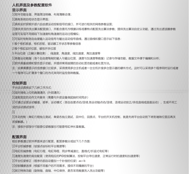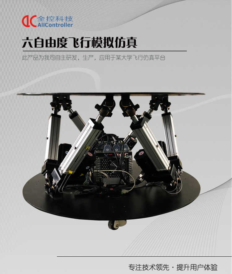 南京全控航空科技有限公司創(chuàng)建于2013年,注冊資金1000萬,占地面積5000平米。是一家集研發(fā)設計、生產安裝、銷售服務為一體的多元化發(fā)展綜合性高科技技術型企業(yè)。擁有自主品牌商標和產品知識產權,主導產品為:三/六自由度運動仿真平臺、賽車/飛行游戲平臺、地震仿真平臺、虛擬仿真模擬平臺、三/六自由度運動平臺控制卡、各類自由度平臺控制系統(tǒng)、控制軟件、標定軟件、播放軟件、中控軟件以及同步軟件和VR虛擬設備等,廣泛應用在各種訓練,如飛行、艦艇、坦克等的駕駛模擬,以及動感電影、娛樂設備等各特種行業(yè)設備領域。目前已通過GJB9001C-2017武器裝備質量管理體系、GB/T28001-2011/OHSAS18001:2007職業(yè)健康安全管理體系、ISO9001質量體系、ISO14001環(huán)境管理體系認證和CE產品認證,擁有軟著54件、專利32件、軟品8件,并獲得中國質量誠信4A級品牌企業(yè)、江蘇省民營科技企業(yè)、軟件企業(yè)、江蘇省高新技術后備企業(yè)、南京市2017年度“專精特新”中小企業(yè)、江寧區(qū)“守合同重信用”企業(yè)、江寧區(qū)知識產權示范企業(yè)等稱號,其中六自由仿真平臺被認定為江蘇省重點推廣應用的新技術新產品、江蘇省高新技術產品、南京市新興產業(yè)重點推廣應用產品。