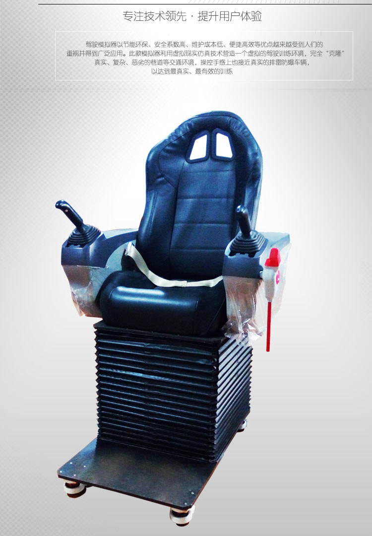 1駕駛模擬器以節(jié)能環(huán)保、安全系數(shù)高、維護(hù)成本低、便捷高效等優(yōu)點(diǎn)越來越受到人們的重視并得到廣泛應(yīng)用。此款模擬器利用虛擬現(xiàn)實(shí)仿真技術(shù)營造一個(gè)虛擬的駕駛訓(xùn)練環(huán)境,完全“克隆”真實(shí)、復(fù)雜、惡劣的巷道等交通環(huán)境,操控手感上也接近真實(shí)的排雷防爆車輛,以達(dá)到最真實(shí)、最有效的訓(xùn)練。