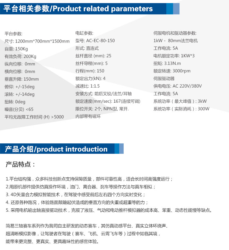 逼真模擬高速飛機飛行、高速汽車駕駛、高速快艇駕駛;可玩各類互動駕駛、飛行類游戲。模擬真實的拐彎、旋轉(zhuǎn)、高速俯沖、爬升、傾斜、下墜、顛簸等高難度、高速度、刺激驚險的動作;可看各種內(nèi)容的3D、5D動感電影。帶給您超級震撼、刺激、真實的駕駛感,讓您充分身臨其境地駕駛法拉利跑車、越野賽車、極速賽艇、私人飛機般的豪華奢侈、超越自我、飛馳電掣、穿越時空等平常甚至終身難以體驗的超級刺激、卻又無比安全的娛樂感受!