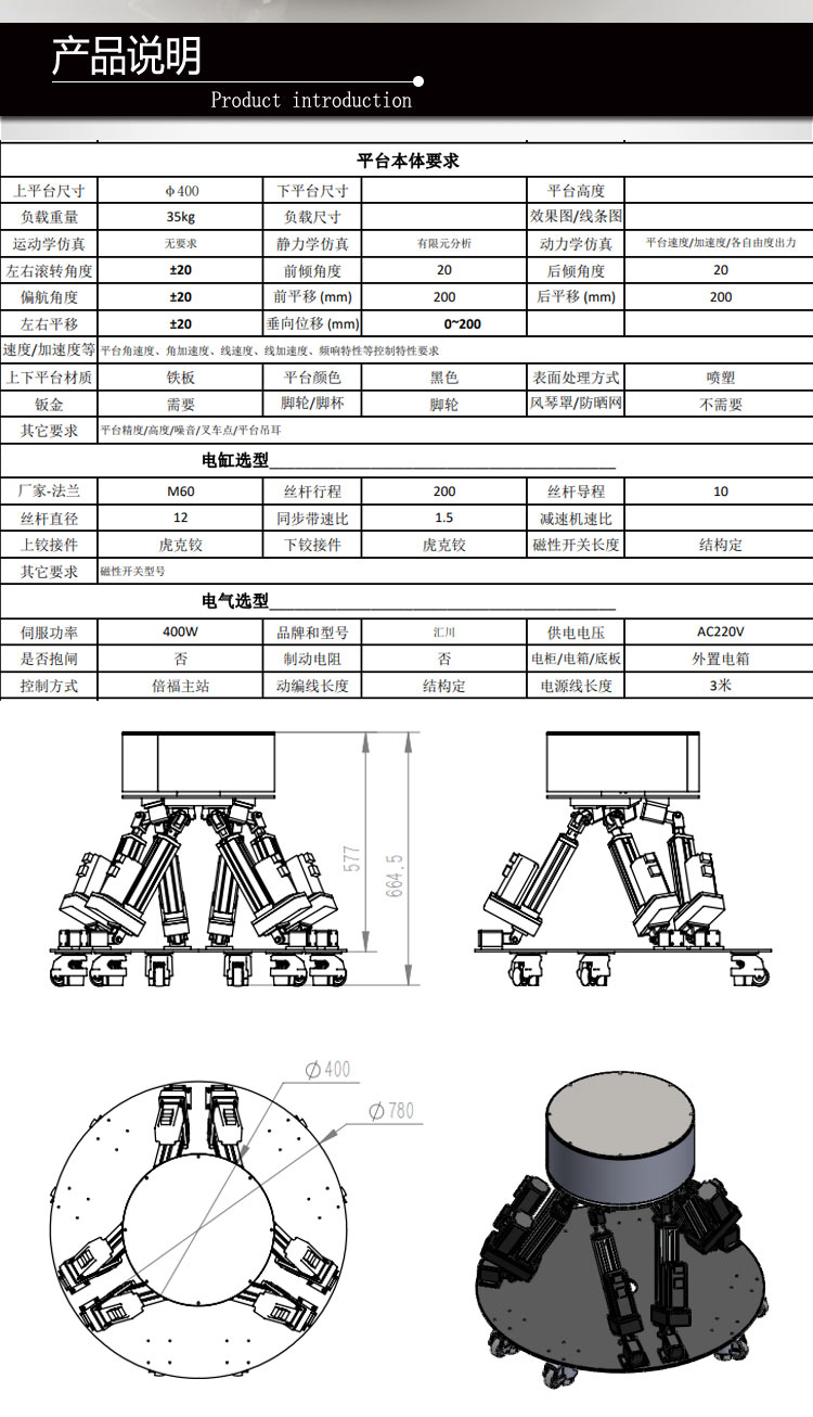 該款七自由度傾斜搖擺試驗臺是一種對艦船、汽車、飛機、宇航等交通工具進行運動模擬的試驗設備。因其能全面考察和檢測在真實環(huán)境中平臺及其部件的各種性能,故其應用前景廣泛。