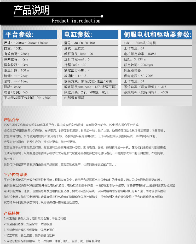 答: 我公司主要從事仿真平臺、六自由度平臺和運動平臺控制卡的研發(fā)、生產(chǎn)與銷售,同時承接大型4D/5D/7D影院等工程。專注技術(shù)領(lǐng)先,提升用戶體驗是我們的追求!