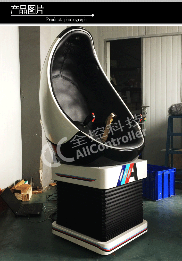 1.三自由度運(yùn)動(dòng)平臺(tái) 2.蛋殼座椅(動(dòng)感互動(dòng)倉(cāng)) 3.電氣控制箱 4.控制軟件5.VR眼鏡(選配) 6.電腦 7.其他配件