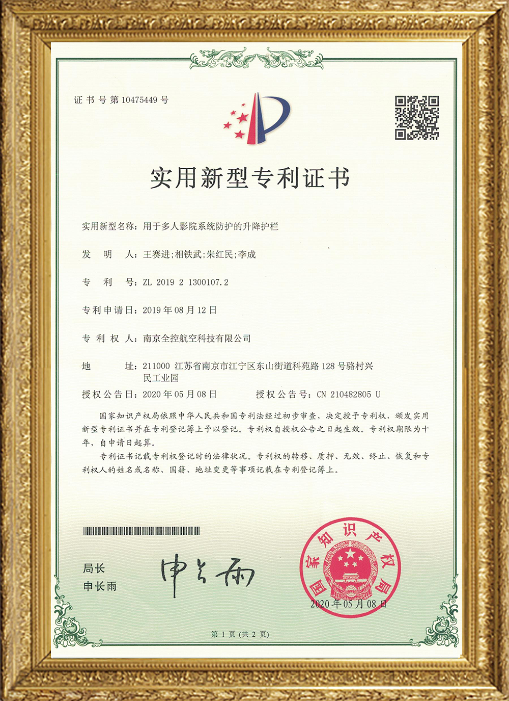 實(shí)用新型證書