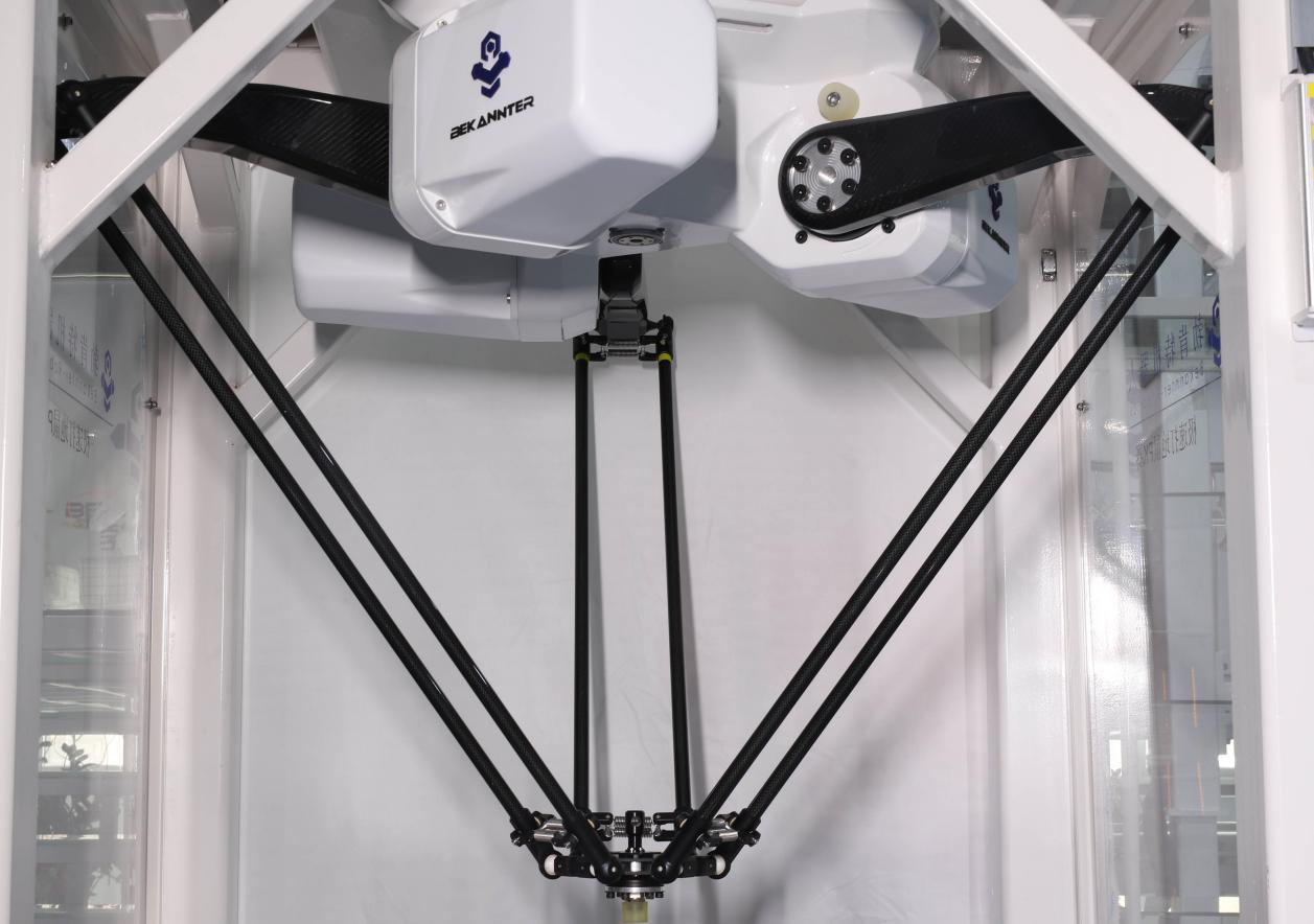 Delta機器人的最大優(yōu)勢是速度快,業(yè)內勃肯特的高速并聯(lián)機器人標準節(jié)拍已達到433次/min,超過了國外品牌,可見Delta機器人很適合用于抓取搬運小重量物體,所以被大規(guī)模應用于食品、醫(yī)藥、3C等領域。