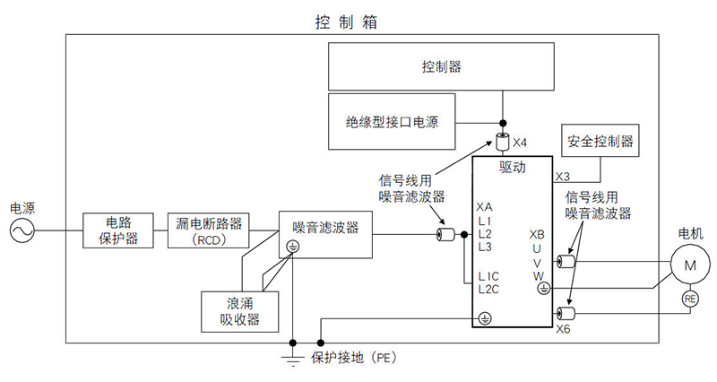 電氣控制柜結(jié)合市面上主流的驅(qū)動(dòng)器推薦的標(biāo)準(zhǔn)方案來(lái)制作,其在產(chǎn)品的對(duì)外干擾、自身EMC電磁兼容的可靠性上有了很大的優(yōu)點(diǎn)。控制柜的主要部件有:帶漏電保護(hù)功能的斷路器、電磁接觸器、濾波器、輸出電抗器、低紋波導(dǎo)軌電源等部件。