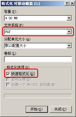 語(yǔ)音卡與語(yǔ)音板通訊軟件之間通訊采用RS-232通訊,設(shè)備之間通過(guò)RS-232標(biāo)準(zhǔn)延長(zhǎng)電纜連接。連接USB電纜后,格式化設(shè)備(選擇快速格式化)。