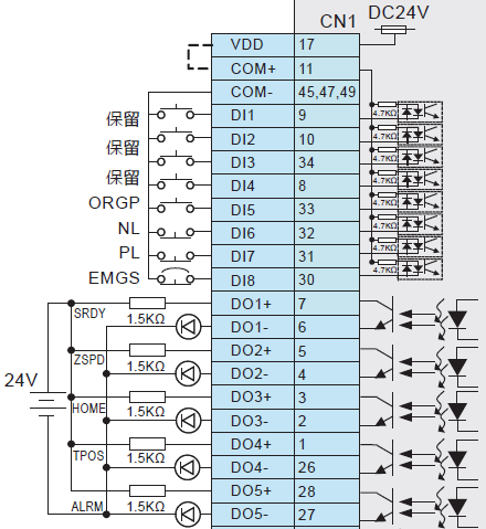 11, 17 COM+ 狀態(tài)指示,接正泰DC24V指示燈,地回路為2腳
