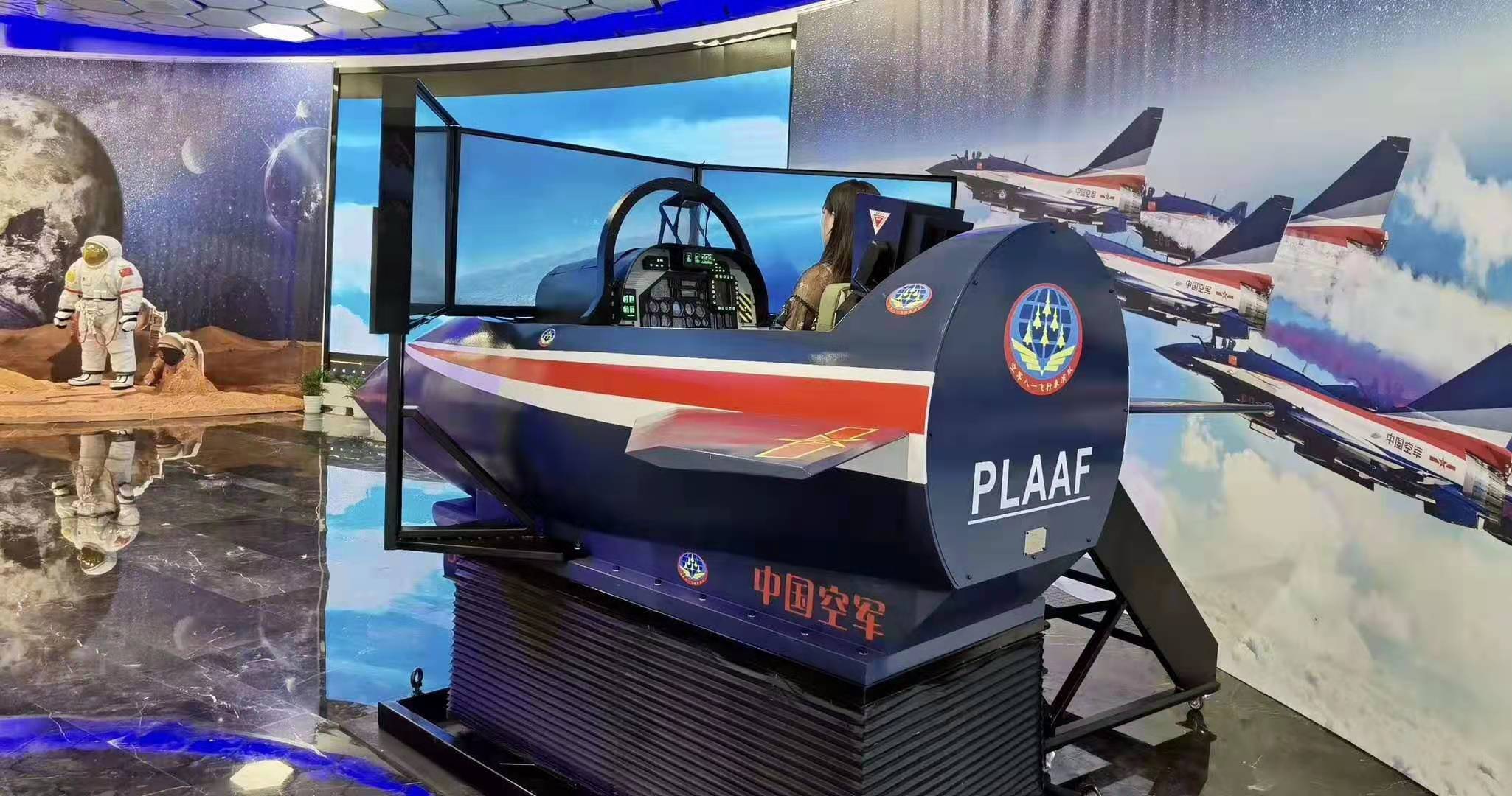 六自由度VR戰(zhàn)斗機飛行仿真模擬器集成仿真座艙、運動平臺、視景系統(tǒng)、觸摸式控制臺、計算機系統(tǒng)、供電系統(tǒng)和通訊模塊的飛行駕駛...